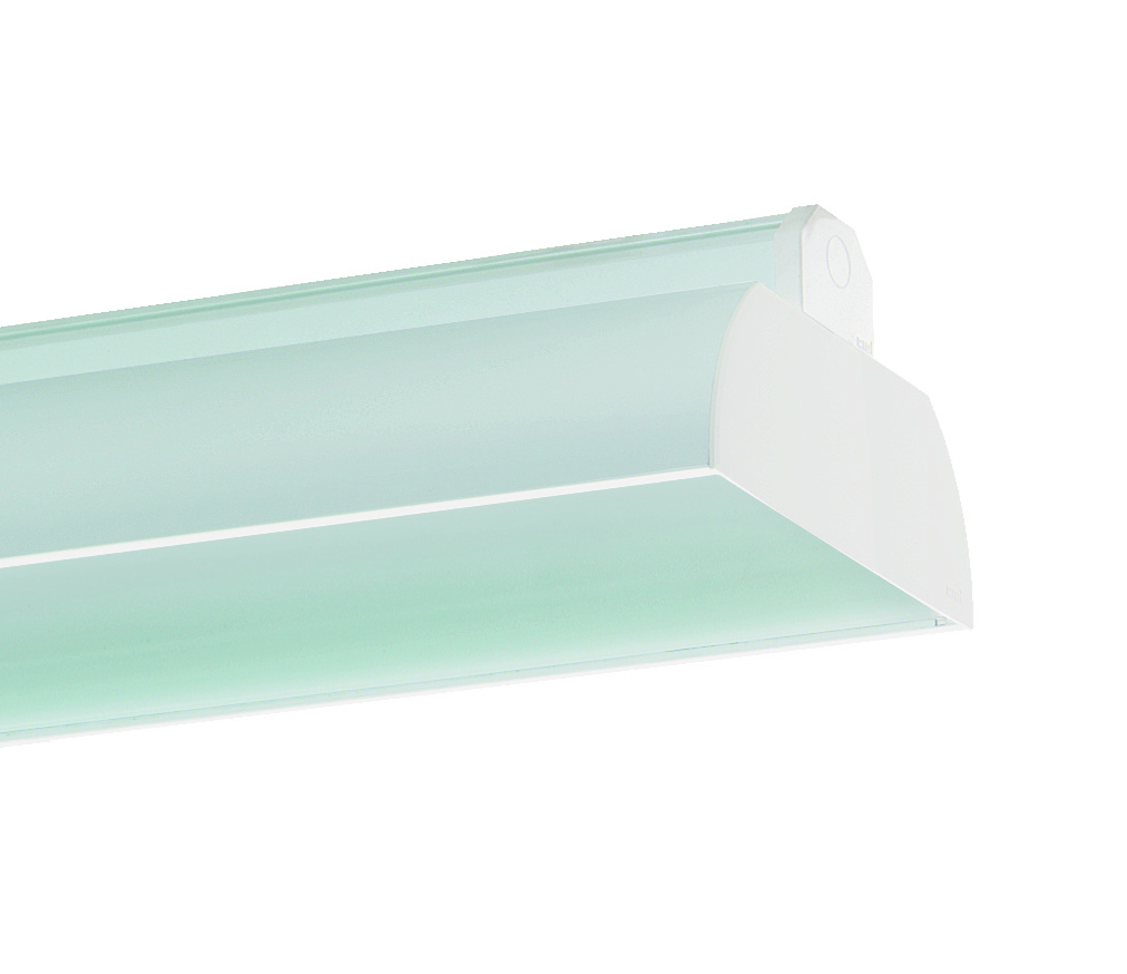 LINIA continuous lighting system, 2x58W fluorescent lamp with electronic ballast, white coated steel reflector, wide light distribution, through wiring with flexible take-off 5x2.5mm2, without light source