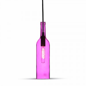 Borosüveg alakú függeszték, üveg búrával,pink , 1x60W/E14 fényforráshoz (VT-7558)