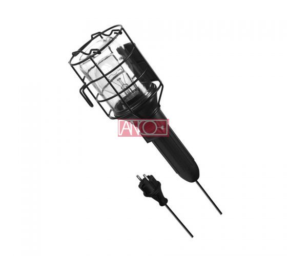 321409 Kézilámpa fémkosaras 60W, 5m, fekete IP44, kapcsolóval
