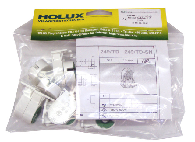 Számlázási megnevezés: 249/TD (12db bliszterben) lecsav. fénycső foglalat, G13