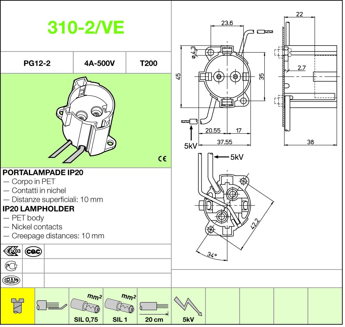 310-2/VE (50db) fémhalogén foglalat PG12-2