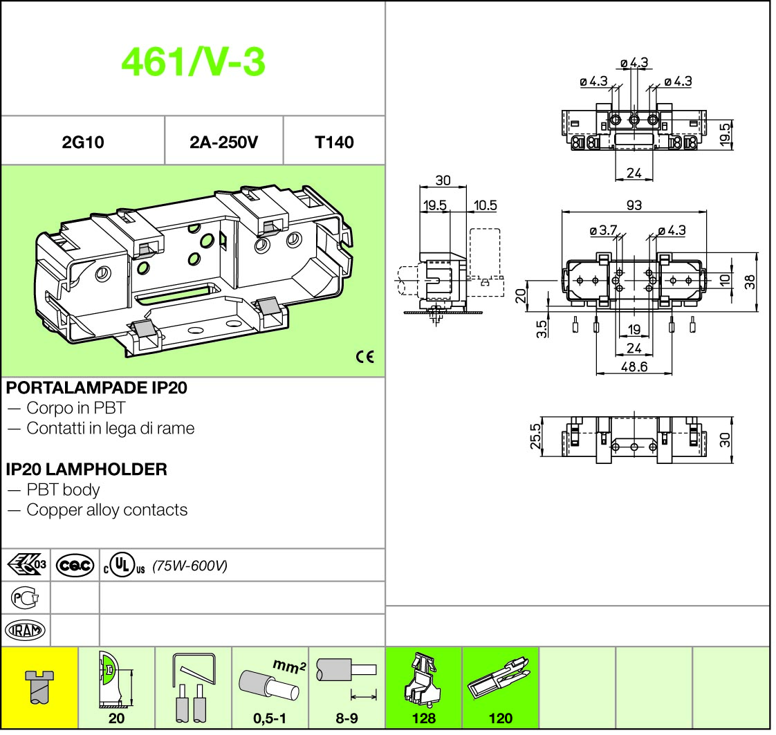 461/V-3 (50db) 2G10-es lecsavarozható kompaktfénycső-foglalat