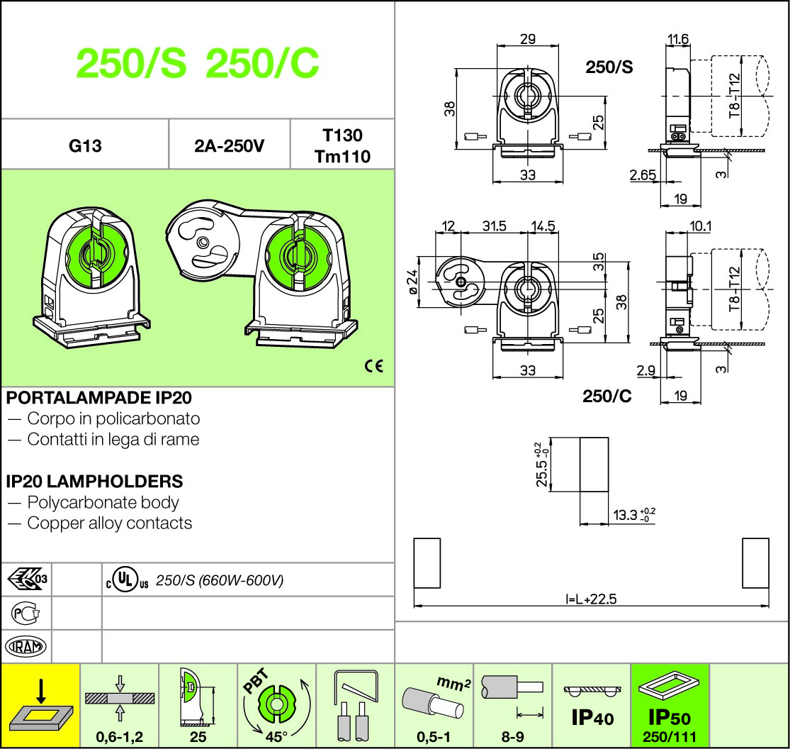 250/C (200db) G13-as téglánykivágásba bepattintható, gyújtós fénycső foglalat