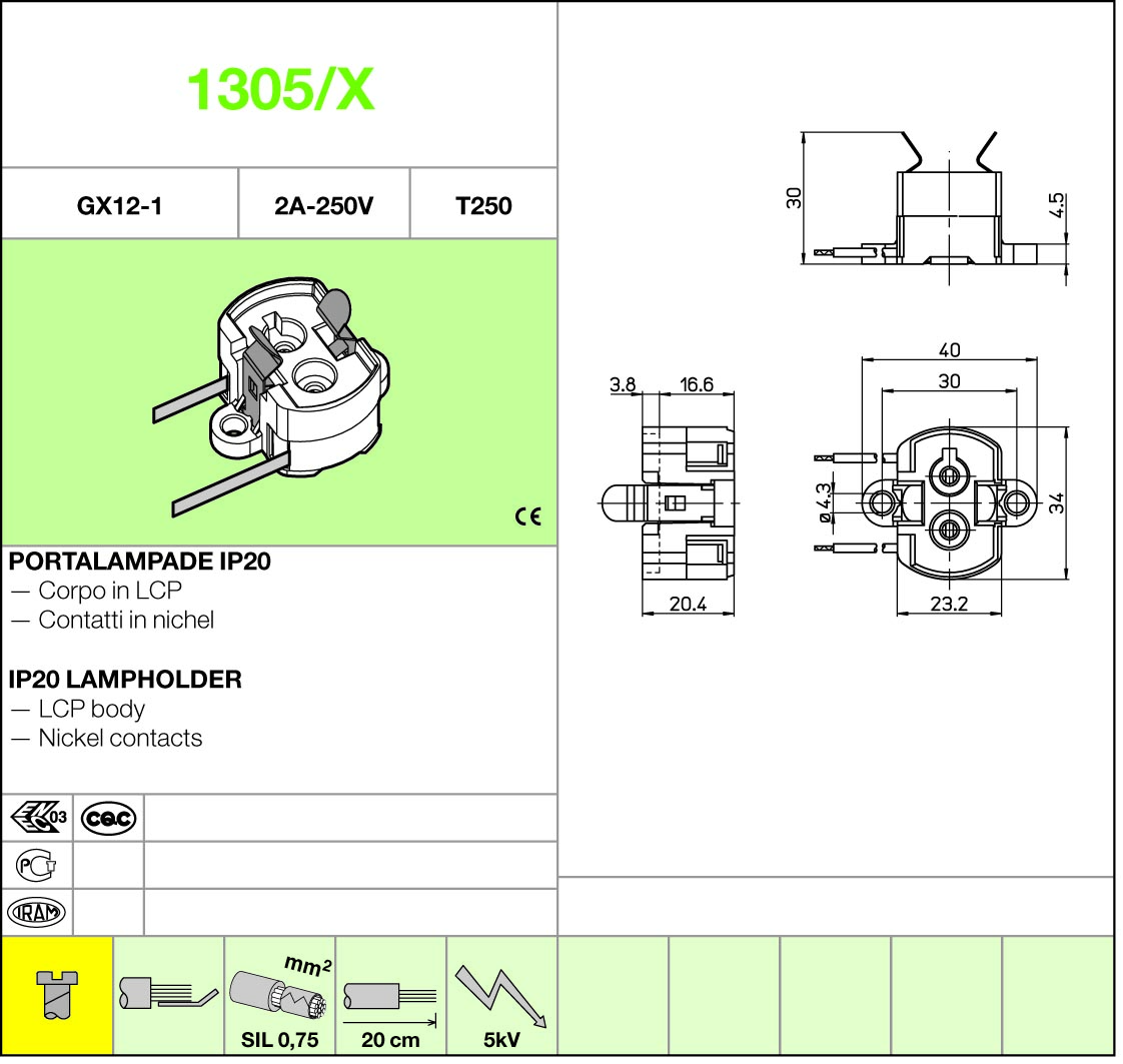 1305/X (200db) GX12-1-es lecsavarozható fémhalogén lámpa foglalat