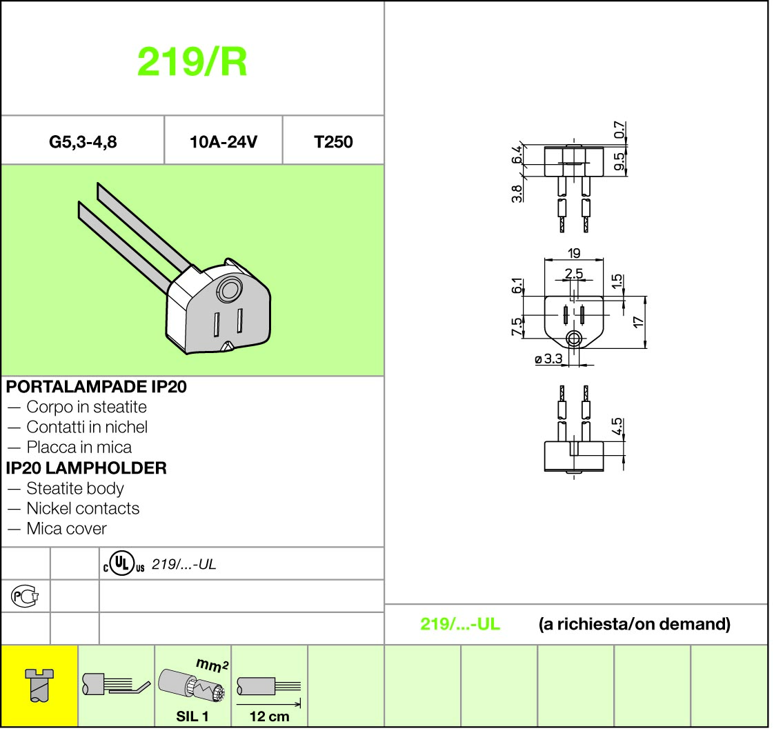 219/R (200db) G5,3-4,8-as lecsavarozható, kisfeszültségq halogén lámpa foglalat 12cm vezetékkel