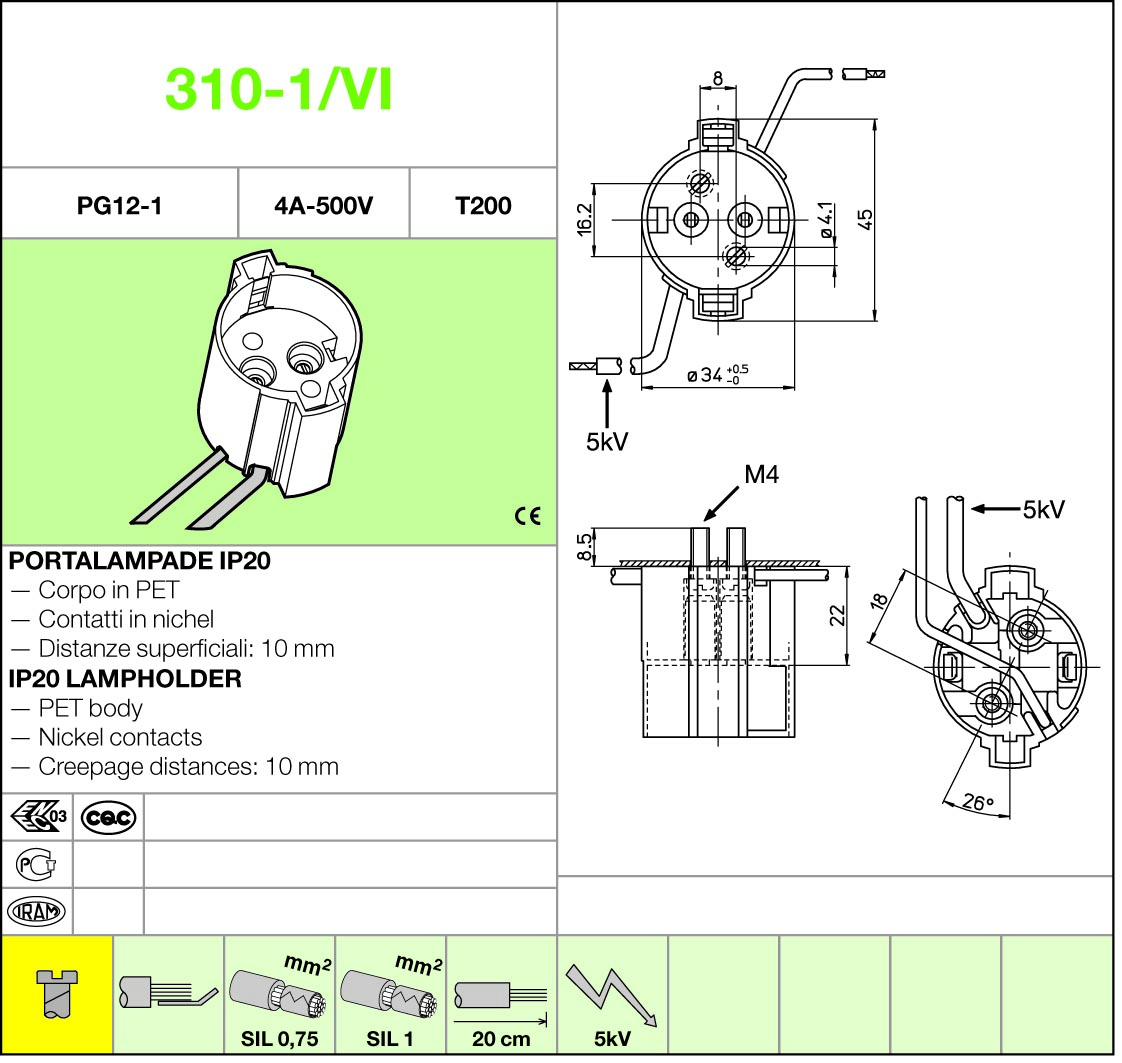 310-1/VI (50db) PG12-1 lecsavarozható nátriumlámpa foglalat