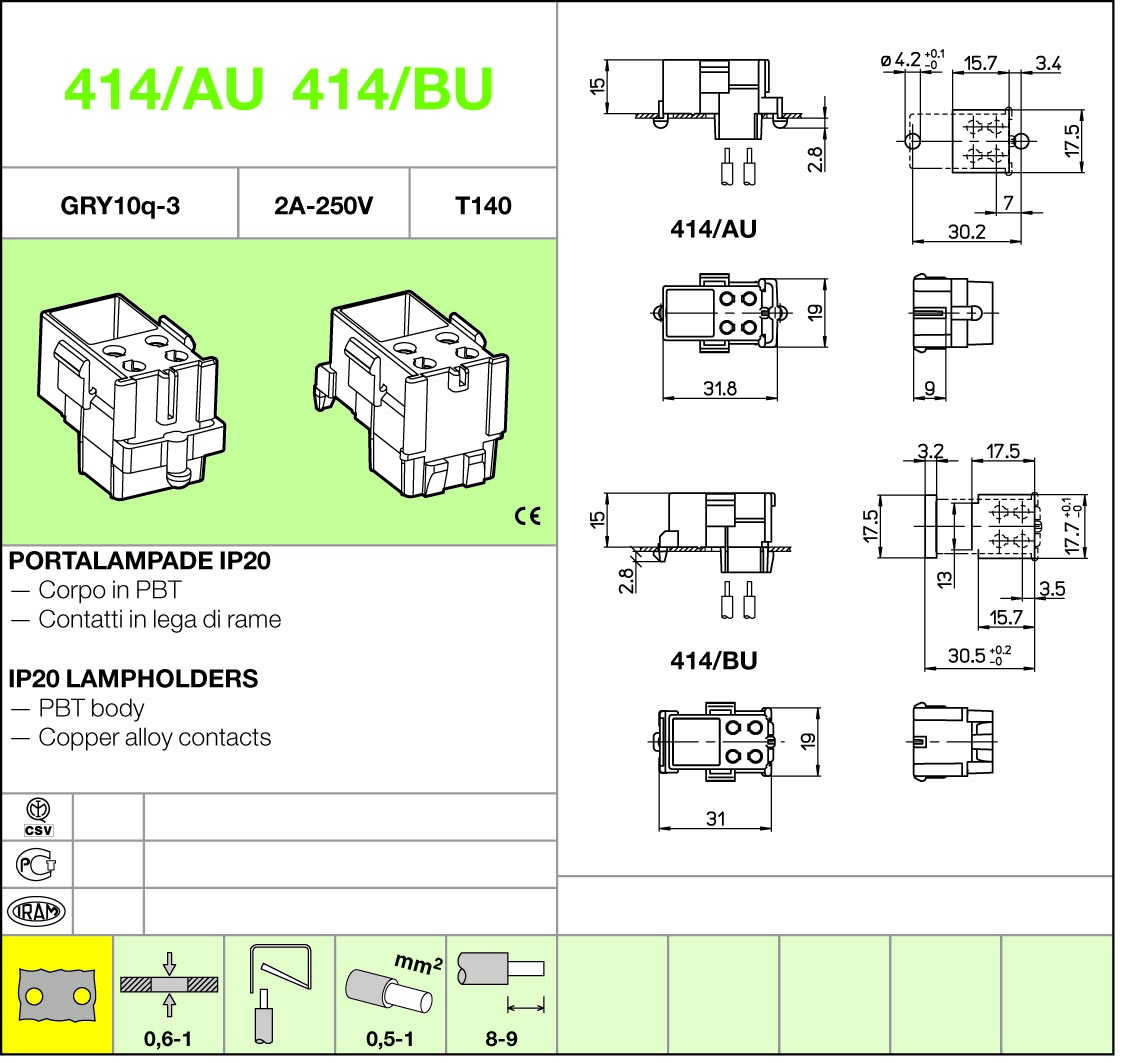 414/AU (200db) 2D fénycső foglalat GRY10q-3