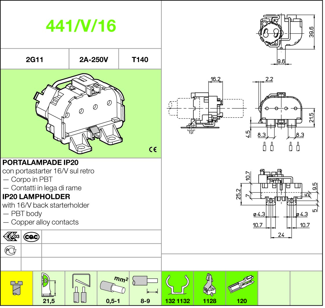 441/V-16 (100db) komp.fénycső foglalat 2G11 gyújtós