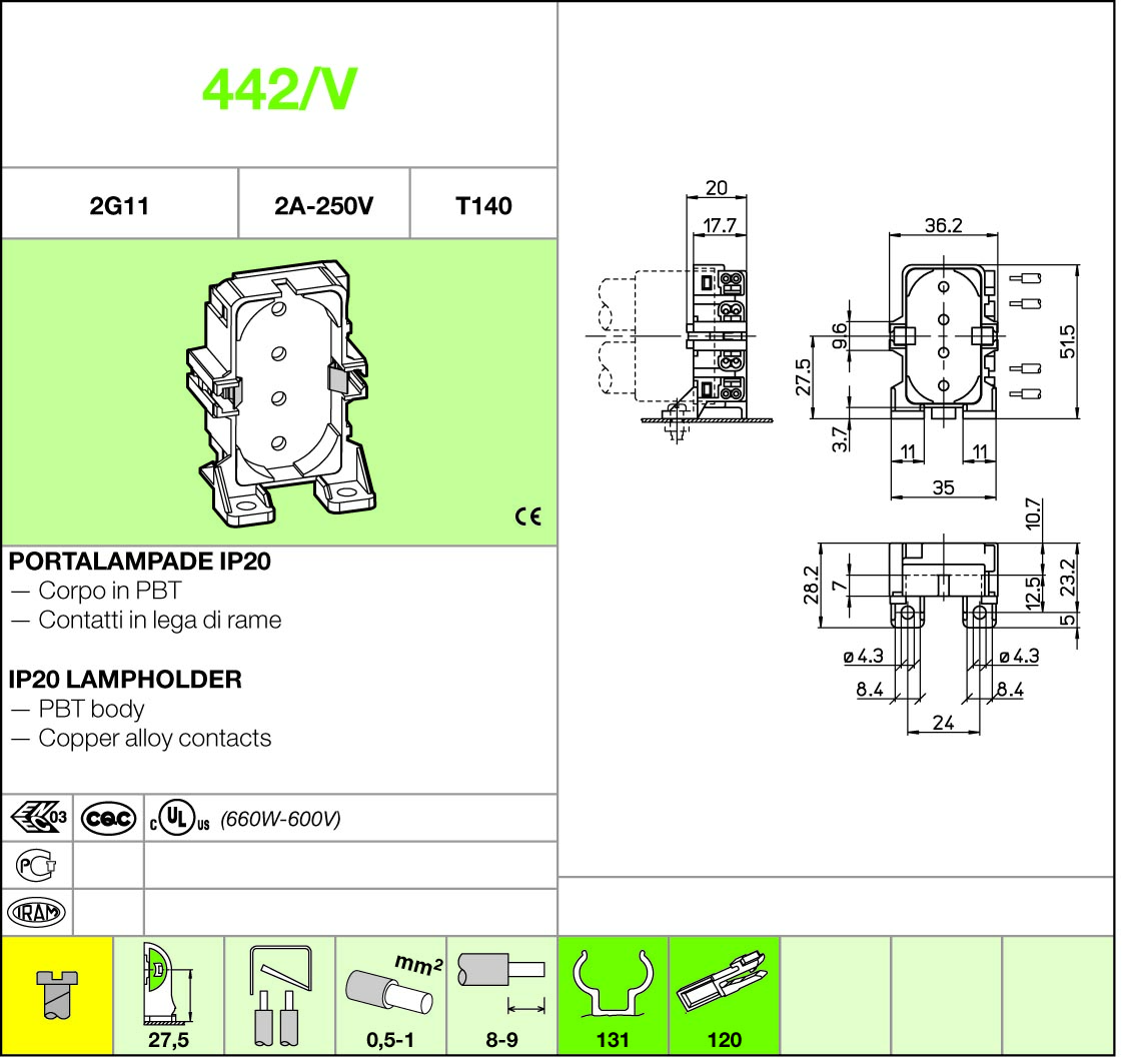 442/V (100db) 2G11-es lecsavarozható kompaktfénycső-foglalat