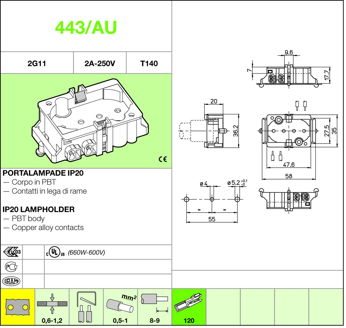 443/AU (100db) 2G11-es bepattintható kompaktfénycső-foglalat
