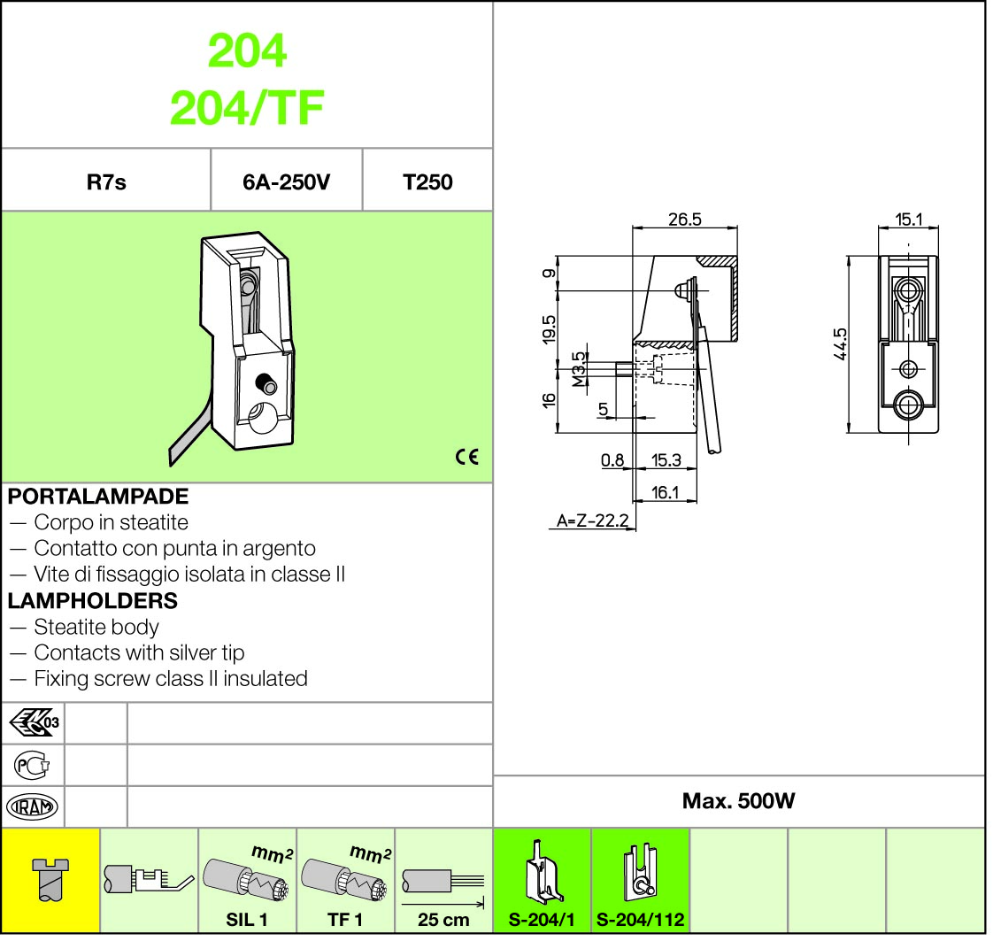 204/TF (6db bliszterben) ceruza halogén foglalat R7s