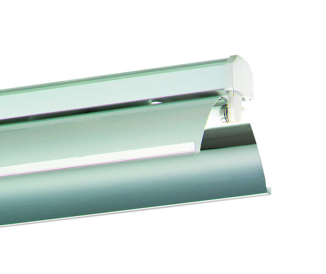 LINIA gyorsszerelésű lámpatestrendszer, 1x58W-os fénycsöves lámpatest egység alumíniumból készült extrém keskenyen sugárzó fényterelővel, elektronikus előtéttel, 7 eresen elővezetékelt tartósínnel, fényforrás nélkül