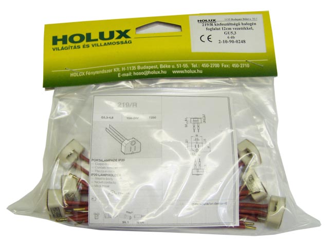 219/R (6db bliszterben) kisfeszültségű halogén foglalat G5,3-4,8 12cm vezetékkel