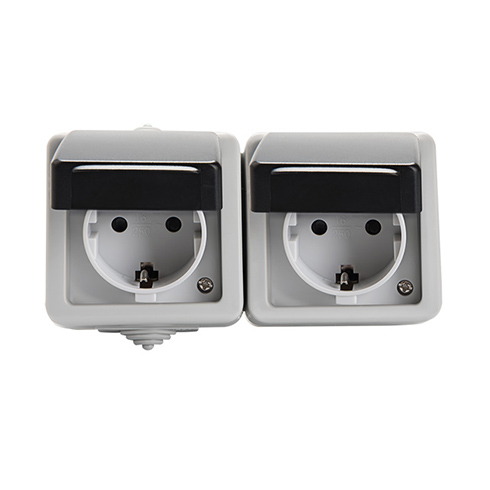 TEKNO 2x2P+F gyermekvédelemmel,vízszintes, falon kívüli, IP54